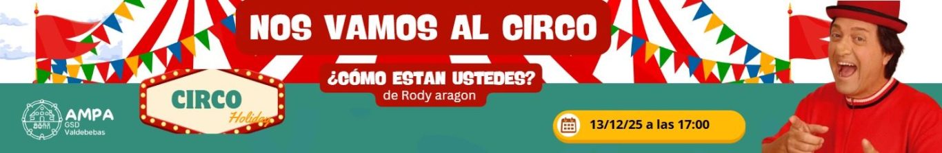 Por primera vez, el AMPA organiza una función exclusiva para el Colegio GSD Valdebebas del Circo Holiday de Rody Aragón, dirigida únicamente a las familias del GSD Valdebebas (tanto socias como no socias).