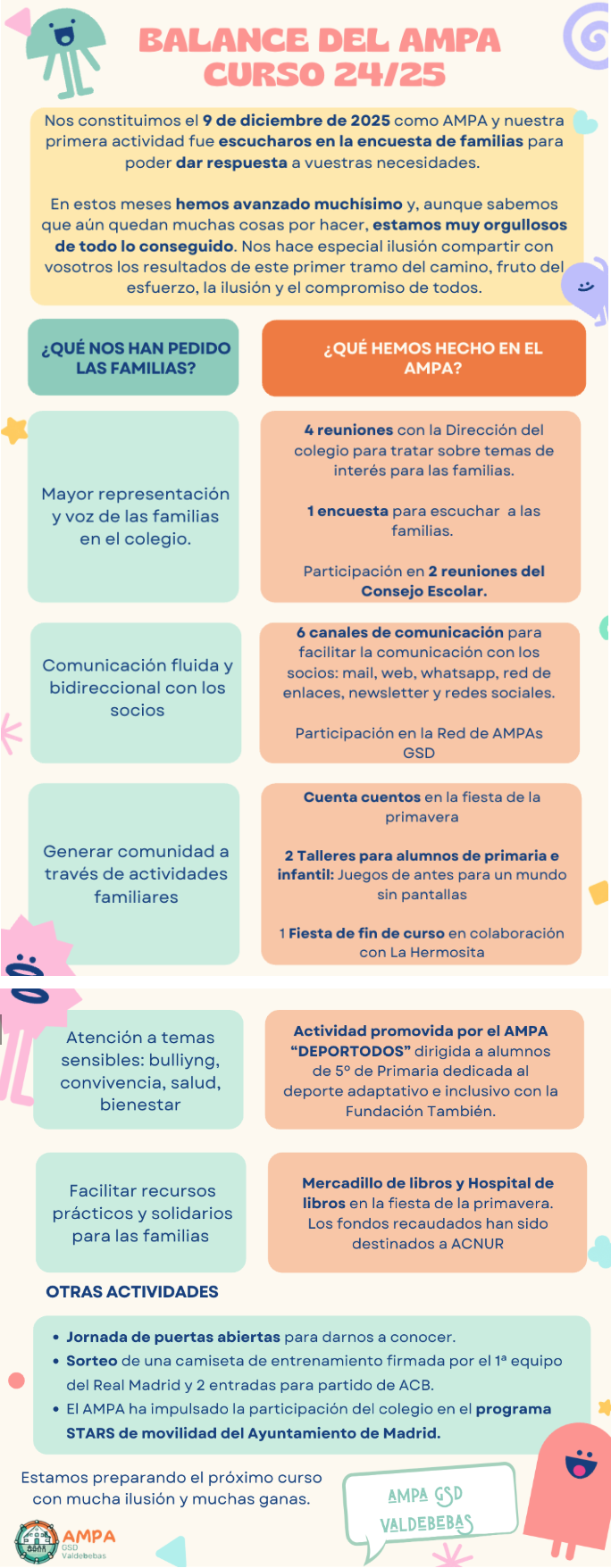 ¡¡Actividades del AMPA GSD Valdebebas para el curso 2025/2026!!